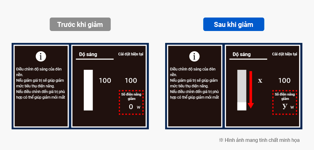 ※ Phương pháp tính điện năng tiêu thụ trong năm được tính theo tiêu chuẩn của Chương trình quốc tế ENERGY STAR. Lượng điện tiêu thụ trong năm(kWh)=(0.35×PON+0.65×PSLEEP)×24×365/1000.