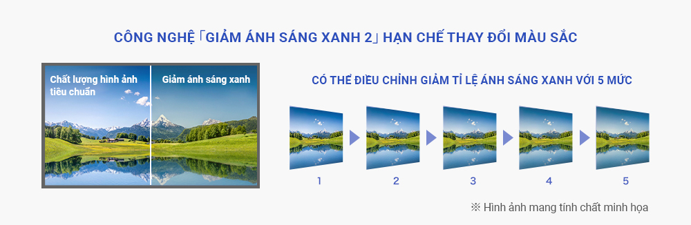 Sản phẩm này có trang bị chức năng "giảm ánh sáng xanh 2" giúp giảm ánh sáng xanh ngay trên màn hình.