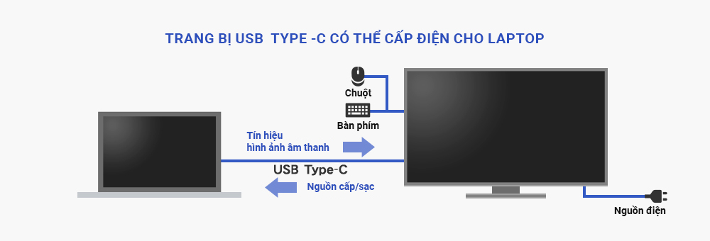 ※ Để cấp nguồn và sạc bằng USB Type-C, thiết bị bạn đang sử dụng có ổ cắm USB Type-C phải tương thích với USB Power Delivery