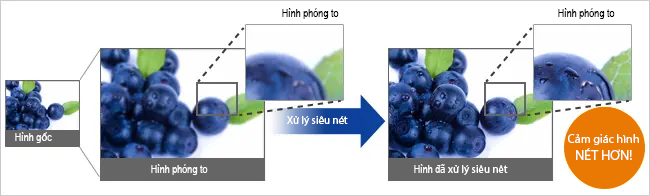 Chức năng này giúp tăng cường độ rõ nét của hình ảnh có độ phân giải thấp, hiển thị các đường viền rõ ràng ngay cả trên màn hình lớn.